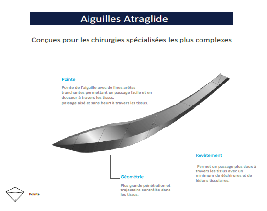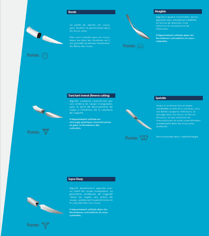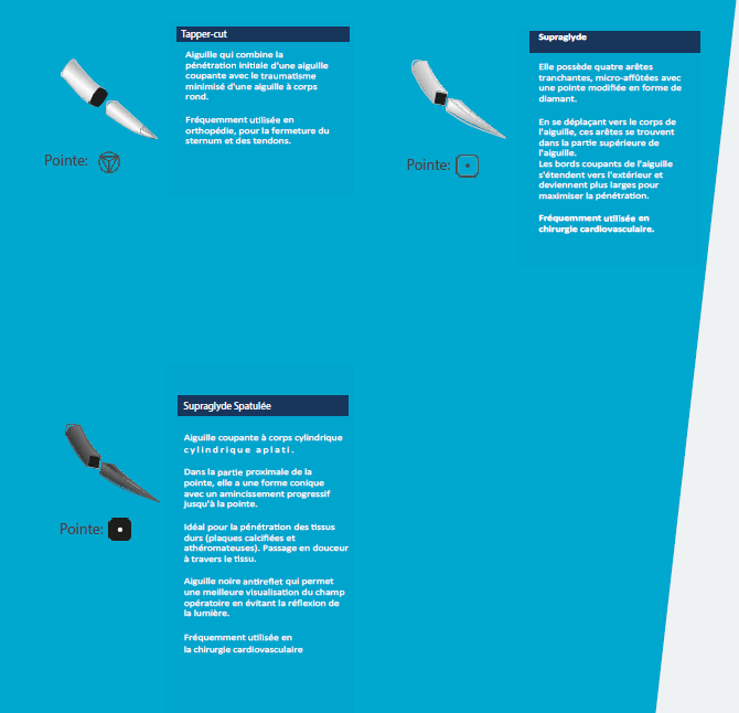 Chez Nova Chirurgie, nous proposons différents type d'aiguilles, toujours serties avec le fil.